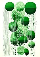 Het kunstwerk is een intrigerende compositie van verschillende groenschakeringen die samenkomen in een reeks van geometrische en organische vormen.