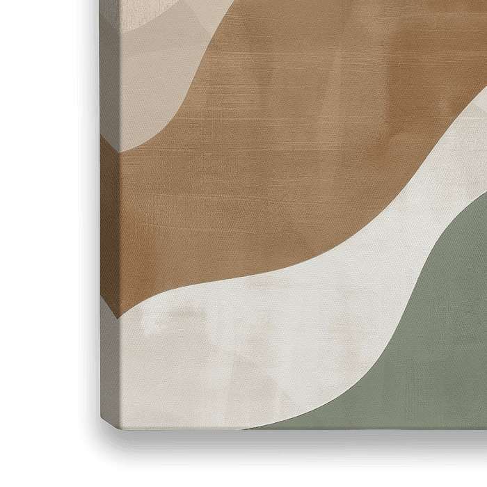 Dit werk uit de Japandi-collectie combineert zachte, vloeiende vormen met een rustgevend palet van aardetinten en groen. De overlappende lagen creëren een gevoel van diepte en beweging, terwijl de ingetogen kleuren een kalmerende sfeer uitstralen. Perfect voor een minimalistisch interieur, of het nu in een woonkamer of een slaapkamer…