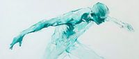 Een fascinerende, dynamische bodytint die drijft in een glinsterende aquakleur geeft een gevoel van beweging en vrijheid. De vloeiende lijnen en subtiele schaduwen vertellen over een bewegende vorm en geven de kamer een modern, artistiek tintje. Ideaal voor de woonkamer, waar creativiteit en inspiratie welkom zijn.