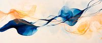 Zachte golven in blauwe en warme goudtinten dansen sierlijk over een lichtgekleurd canvas en geven de kamer een elegante lichtheid. De vloeiende vormen stralen rust en creativiteit uit en zijn daarom perfect voor een minimalistische woonkamer of een inspirerend kantoor. Een blikvanger die de gedachten laat stromen.