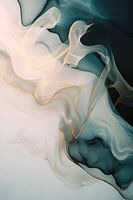 Zachte, vloeiende vormen smelten samen in een harmonieus samenspel van donkere en lichte tinten. Delicate, bijna doorschijnende golven dansen samen, terwijl gouden accenten de indruk van licht en beweging benadrukken. Deze abstracte compositie roept associaties op met dromerige landschappen en laat ruimte voor je eigen verbeelding.