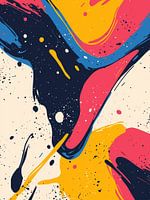 Dit abstracte kunstwerk toont een combinatie van dynamische kleurenstromen in blauw, geel en roze. De kleuren lijken naar elkaar toe te bewegen, waardoor een levendig effect ontstaat. De lichte achtergrond benadrukt de intensiteit van de kleuren en geeft de compositie een moderne uitstraling. Kleine kleurspatten en vloeiende overgangen geven het beeld een vleugje spontaniteit. Ideaal voor creatieve en inspirerende kamers.
