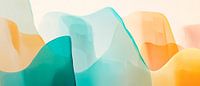 Zachte golven in zachte pasteltinten van aqua, oranje en crème roepen een rustgevende sfeer op. Deze harmonieuze kleurtonen vloeien elegant in elkaar over en creëren een gevoel van lichtheid en ruimte. Perfect voor een slaapkamer, ze bevorderen ontspanning en een dromerige stemming terwijl ze een vleugje moderne stijl toevoegen.