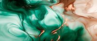 Zachte, gebogen lijnen in diepgroen en warme, aardse tinten verwennen het oog en creëren een harmonieuze sfeer. Deze dynamische kleurencompositie straalt rust en elegantie uit en is perfect voor een slaapkamer of een moderne woonkamer, waar het een ontspannen sfeer creëert.
