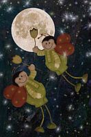 Vlucht naar de maan, reis naar de maan, de sterren, het universum, Sky, Space, Planet, Trabant, lieveheersbeestje, nacht, kind motief, foto's kinderen, betoverende, fantastisch, fantasie, fairytale, sprookje, volle maan,