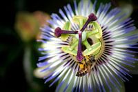 Een wesp (ik denk dat het een wesp is) is druk bezig met een bloem van de Passiflora. De passiebloem vind ik een van de mooiste bloemen die er bestaan, en ik was nogal verbaasd dat ik in hartje Amsterdam langs een struik liep die veel bloemen had en vrijwel allemaal veel bezoek hadden. Deze bloem had slechts een bezoeker, andere bloemen…