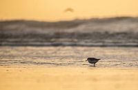 Drieteenstrandloper foeragerend door de branding.