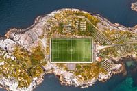 Waarschijnlijk het beroemdste voetbalstadion van Noorwegen in Henningsvaer op de Lofoten.