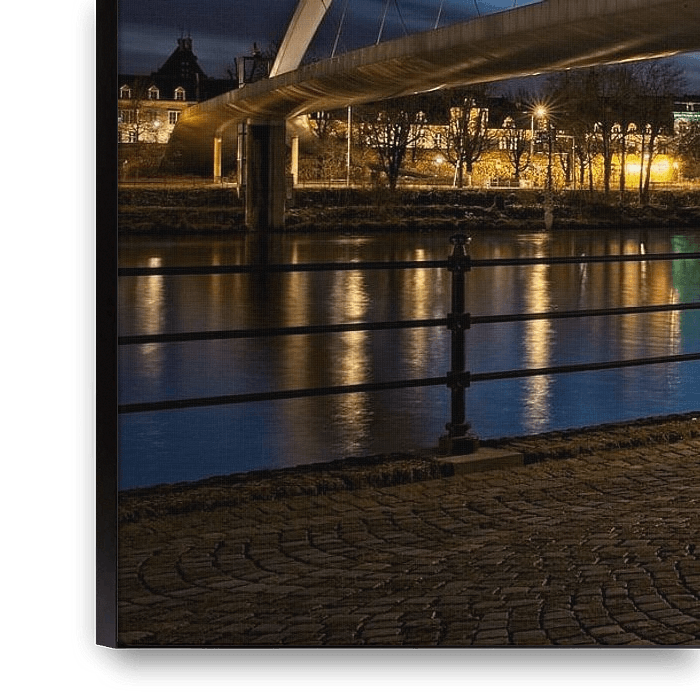 De voetgangersbrug over de rivier de Maas die de verbinding vormt van Centre Ceramique naar het oude centrum.