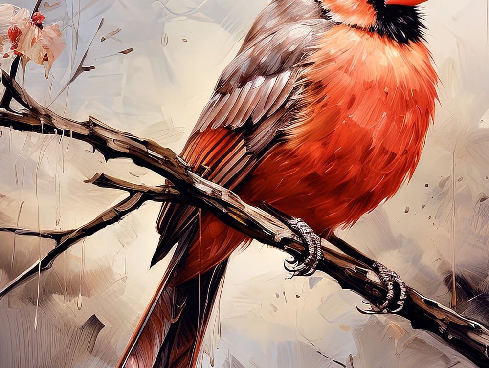 Zeker! Hier's een beschrijving van 200 woorden van een olieverfschilderij met een vogel, uitgevoerd in de impasto stijl: