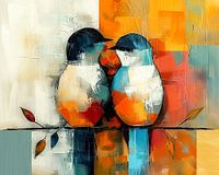 Minimalistisch Kunstwerk | HarmonieAbstract Schilderij Twee Vogels Kunst | SchilderijAbstract Schilderij