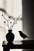 Koop dit bloemen kunstwerk Vogel en bloemen in silhouet van Imperial Art House op canvas, aluminium dibond, (ingelijste) fotoprint, behang en ArtFrame, op maat geprint in Fine-Art kwaliteit.