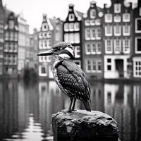 Zwart-wit portretfotografie van een ijsvogel in Amsterdam