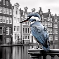 Zwart-wit portretfotografie van een ijsvogel in Amsterdam