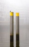 Het is een vogel die het zich gemakkelijk heeft gemaakt op een van de typische eendendolfijnen van Hamburg.