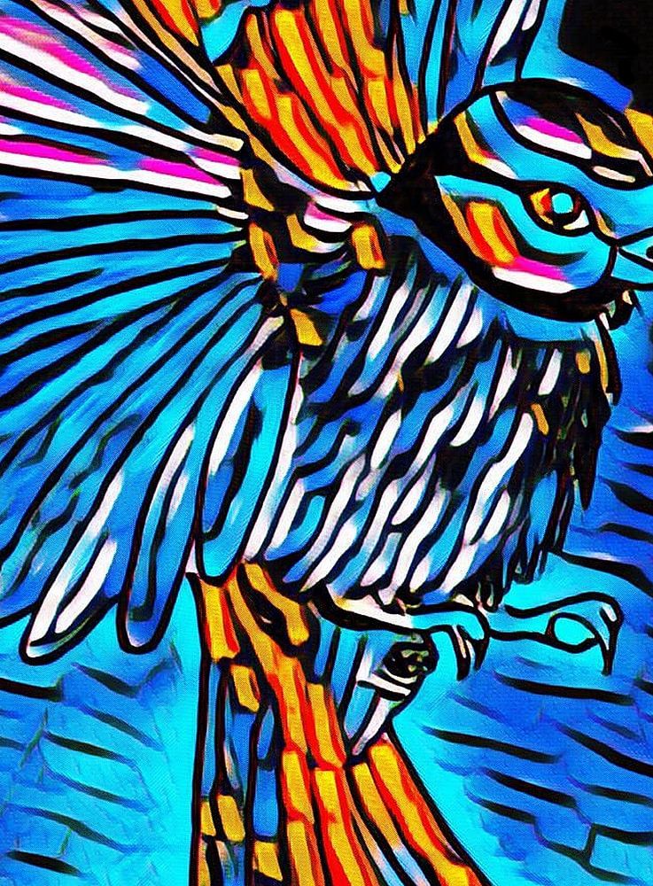 Een tekening gemaakt van een vliegende vogel en deze digitaal bewerkt tot grafitti.