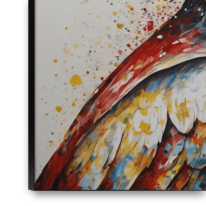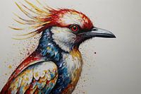 Duik in een verbluffend visueel spektakel met dit abstracte expressieve kunstwerk, waar de levendigheid van een vogel tot leven komt door dynamische penseelstreken en een explosie van kleuren. Elk detail van de veren is zorgvuldig geschilderd om een gevoel van beweging en energie te creëren, waardoor dit stuk een betoverende…