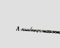 Koop dit vogel kunstwerk Vogel op palen abstract van Yolande Mulder op canvas, aluminium dibond, (ingelijste) fotoprint, behang en ArtFrame, op maat geprint in Fine-Art kwaliteit.