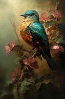 Op de vogel schijnt een licht dat van links boven komen Het geheel heeft een klassieke uitstraling.
