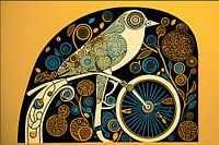 Een inspirerende fietsreis door de seizoenen, die de kijker aanmoedigt om actief te zijn en te genieten van het leven op twee wielen. De abstracte illustratie werd bedacht met kunstmatige intelligentie en aangepast en geoptimaliseerd met Photoshop.