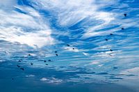 Een troep vogels tegen een blauwe lucht