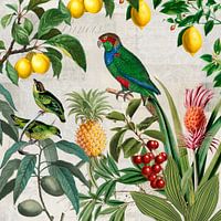 Tropische vogels in een exotische vegetatie met vruchten