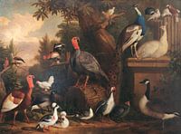 In dit Arcadische herderslandschap heeft de Hongaarse kunstenaar Jakob Bogdani een overvloed aan wilde vogels en vogels afgebeeld: een kalkoen staat op een hoofdstad in het centrum; een pauw en albino perzik op een klassiek fragment; gekleurde duiven en duiven rusten in de takken van de omringende bomen terwijl een assortiment eenden, ganzen en parelhoenders op de voorgrond staan. Een gebouw is in de verte te onderscheiden.