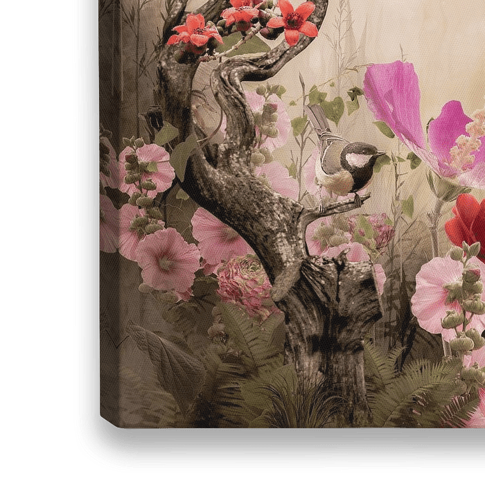 Koop dit bloemen kunstwerk Vogels in het paradijs van Klaartje Majoor op canvas, aluminium dibond, (ingelijste) fotoprint, behang en ArtFrame, op maat geprint in Fine-Art kwaliteit.