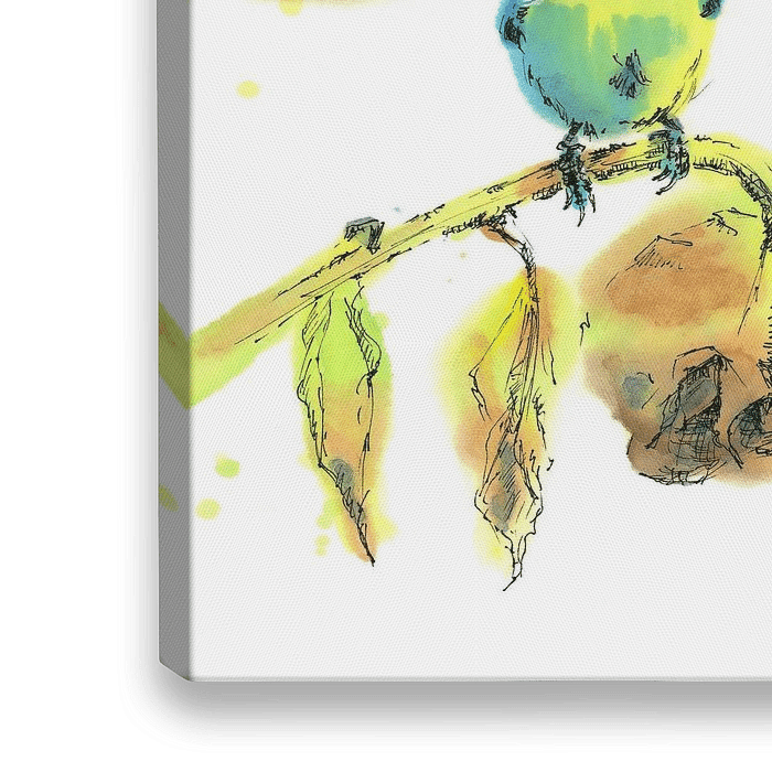 Zonnebloempitten voor de lunch is een inkttekening ingekleurd met aquarelverf in landschapsformaat van de kunstenaar Karen Kaspar. De tekening in zwarte inkt toont een schattig pimpelmeesje dat op een uitgebloeide…