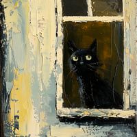terwijl de zwarte kat naar de lucht kijkt.