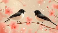 Vogels op een tak lichtroze panorama schilderij die een unieke toevoeging zal zijn in elke ruimte. Met zijn prachtige en stijlvolle uitstraling is het een ware eyecatcher. De schitterende kleuren en het bijzondere ontwerp maken dit kunstwerk 100% uniek en origineel. Het is de perfecte fotoprint om je interieur helemaal af te maken.