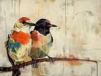 Vogeltje Abstract | Woonkamer - Abstracte Vogeltjes Kunstwerk Schilderij