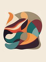 Vrolijk abstract kleurenspel in illustratie vorm. Organische elementen vormen een beeld van samenhang in warme kleuren. Tof als behang, maar ook op bijvoorbeeld canvas..