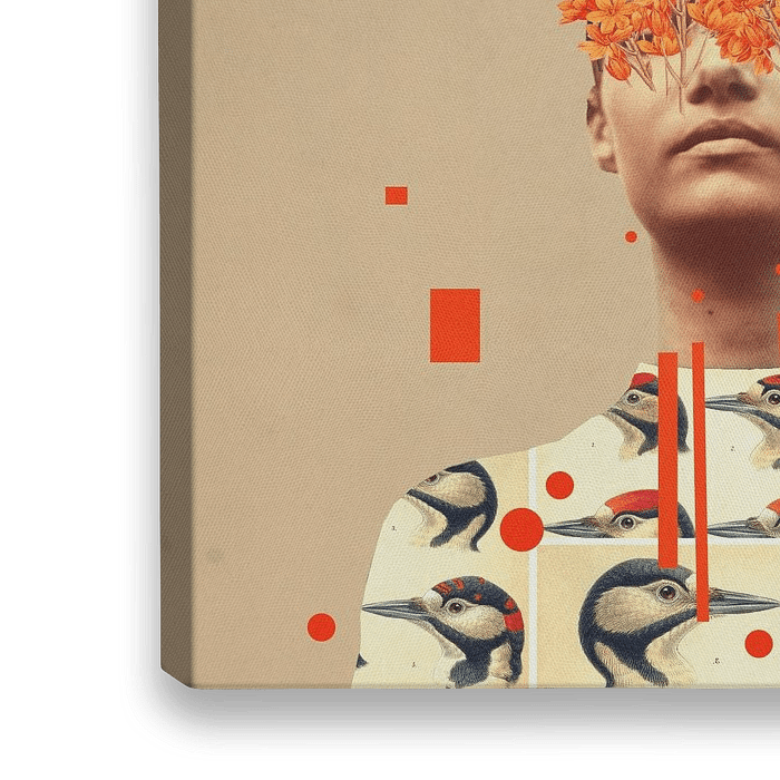 Frank Moth creëert fascinerende digitale kunstwerken die surrealisme en botanische schoonheid tot een adembenemende eenheid smeden. Dit Griekse kunstenaarsduo transformeert traditionele portretten door weelderige bloemenkronen en natuurelementen die letterlijk uit de hoofden van hun modellen lijken te groeien. Hun karakteristieke stijl kenmerkt zich door een rijke kleurharmonie van warme herfstoranje, zachte rozetinten en levendige bloemenaccenten tegen serene achtergronden…