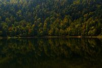 Herfstkleuren beginnen goed zichtbaar te worden in de dichte begroeiing van de Franse Vogezen.