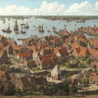 AI gegenereerd beeld van hoe Volendam eruit zou hebben gezien in de 17e eeuw.Uiteraard zal het niet perfect zijn maar wel een leuke terugblik op toen.