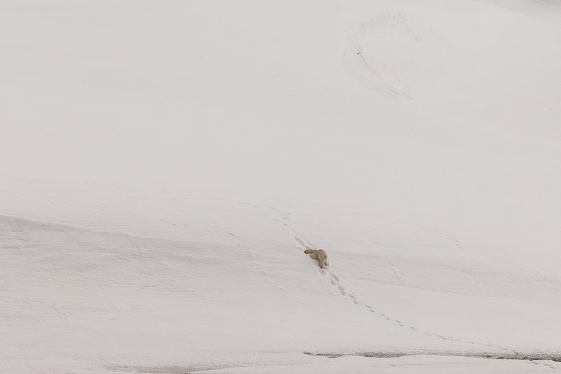 Net na een sneeuwschoenenwandeling in het prachtige Spitsbergen, dook deze IJsbeer op. Zomaar uit het schijnbare niets. Nog geen vijf minuten waren we terug aan boord van het schip.