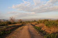 Dit was een van de paden waar we over heen liepen, tijdens een middag wandeling in Malawi. De zon was aan het ondergang, dus alles had een mooie, warme gloed over zich heen. Het is prachtig om de ongerepte natuur zo ver voor je uit te zien strekken.