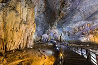 Een van de vele enorme stalagmieten in de Thiên Đường-grot of Paradise Cave, in Vietnam. Het is moeilijk te geloven dat deze grot pas in 2005 is ontdekt. De grot bevindt zich in Phong Nha, bekend om zijn Phong Nha-Kẻ Bàng nationaal park in Northcentral Vietnam. Deze UNESCO-werelderfgoedlocatie is een van de grootste karstregio's met 300 grotten en grotten van Vietnam.