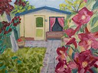 Volkstuin 50 met Clematis aan de ingang. Deze tuin was onze oude tuin we zijn verhuisd naar een kleinere tuin met minder onderhoud. Deze was op mijn verlanglijst om te schilderen.