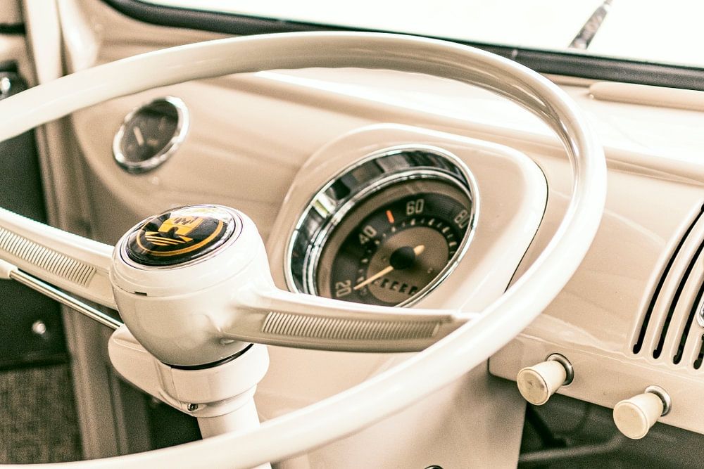 Volkswagen Transporter T1 1950 klassieke bestelwagen dashboard. De Volkswagen Type 2 (T1) Transporter, Kombi of Microbus, was de eerste generatie van Volkswagen's Transporter familie met de iconische Splitscreen voorruit.