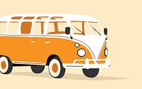 Abstracte illustratie van een licht oranje Volkswagen busje met een licht gele achtergrond. De kleurencombinatie geeft een mooie vintage look!