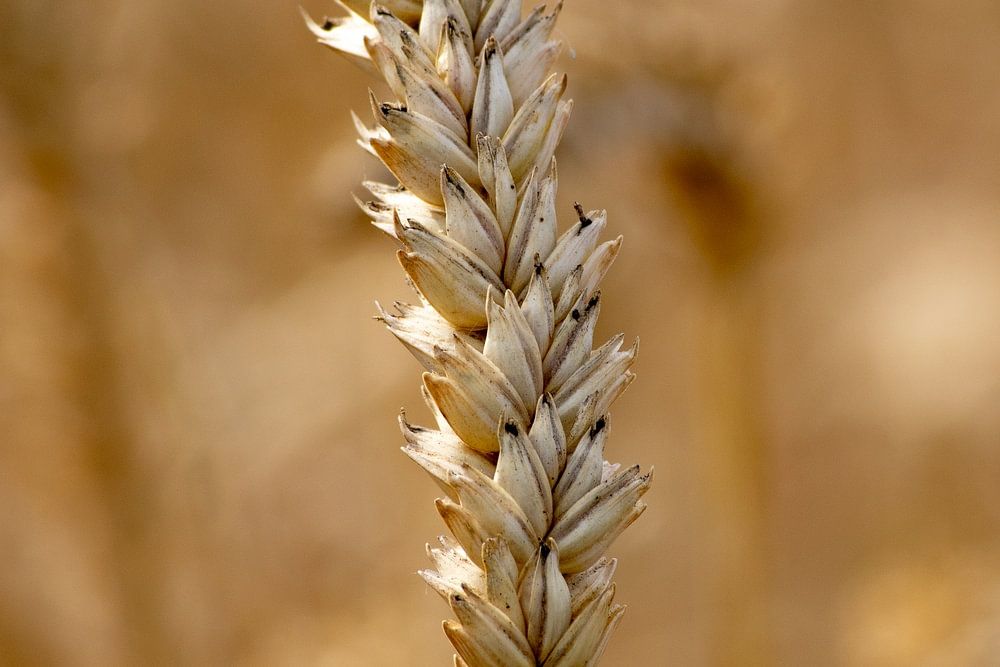 Deze graanhalm staat op één van de akkers die nog niet geoogst zijn door boeren op Zeeland. Het graanveld ligt bij de kustplaats Dishoek.