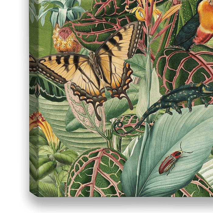 Het is nooit rustig in de jungle. Levendige tropische vogels, olifanten, neushoorns en giraffes. Een ontdekkingstocht voor op de kinderkamer waar de fantasie op los kan gaan.