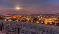 Volle maan boven de besneeuwde heuvels rond Gulpen