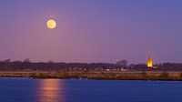 Volle maan boven Schildwolde, een dorp in de gemeente Midden-Groningen in de provincie Groningen. In de voorgrond een klein gedeelte van het Dannemeer, een tussen 2010 en 2014 aangelegd meer en veenmoeras in de voormalige gemeente Slochteren.