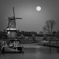 Volle maan in Dokkum in Zwart-Wit van Henk Meijer Photography