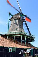 De volledig operationele Verfmolen 'De Kat' op de Zaanse Schans in Nederland wordt normaal gesproken gebruikt als restaurant. Vanwege Covid was het gesloten, maar ze hebben een manier gevonden om wat snacks en koffie te verkopen via een klein raam.