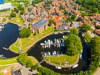 Luchtfoto van Vollenhove in Overijssel tijdens een mooie zomerdag. De oude stad Blokzijl is een populaire plek voor toeristen om te bezoeken.