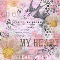 Collage im mixed media Stil mit gemaltem Hintergrund, Druckelementen und verschiedenen Musterpapieren, digital bearbeitet.